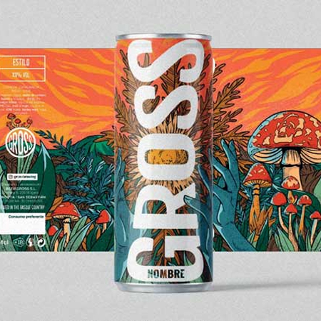 Para la serie especial de cervezas Gross en colaboración con Etxeberria, diseñé varias etiquetas ilustradas con mucho color, energía y guiños a la cultura pop y local.